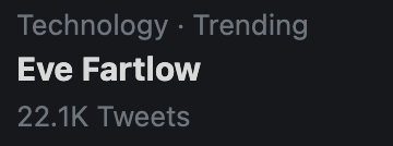 “Eve Fartlow” is pretty funny, and I’d be hard pressed to find someone who deserves this relatively gentle collective ribbing more than her. But it’s worth reflecting on the idea that this is how we do things now. There was one collective four-year scream over the presidency of Donald Trump, followed by him losing the election, and then…nothing. We’ve moved on. The problems that existed under Trump are still there, but now we’re placated. We burned the witch. Do children still get put in cages? Yes, of course, but now they’re called “internment facilities.” Etc.