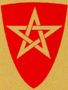 The poem describes Gawain’s armor in detail. He carries a red shield that has a pentangle painted on its front. The pentangle is a token of truth. Each of the five points are linked and locked with the next, forming what is called the endless knot. The pentangle is a symbol that Gawain is faultless in his five senses, never found to fail in his five fingers, faithful to the five wounds that Christ received on the cross, strengthened by the five joys that the Virgin Mary had in Jesus (The Annunciation, Nativity, Resurrection, Ascension, and Assumption), and possesses brotherly love, pure mind and manners, and compassion most precious. The inside of the shield is adorned with an image of the Virgin Mary to make sure that Gawain never loses heart.